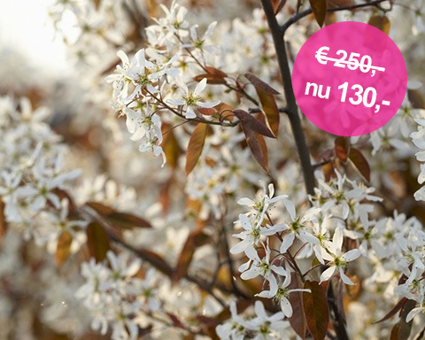 46% korting | Amelanchier lamarckii bloeit vroeg in het voorjaar met witte bloemen, krijgt besjes waar vogels van houden en heeft een mooie herfstkleur. Nu extra voordelige meerstammige krentenboom in de maat 175-200 cm! | naar de actie |